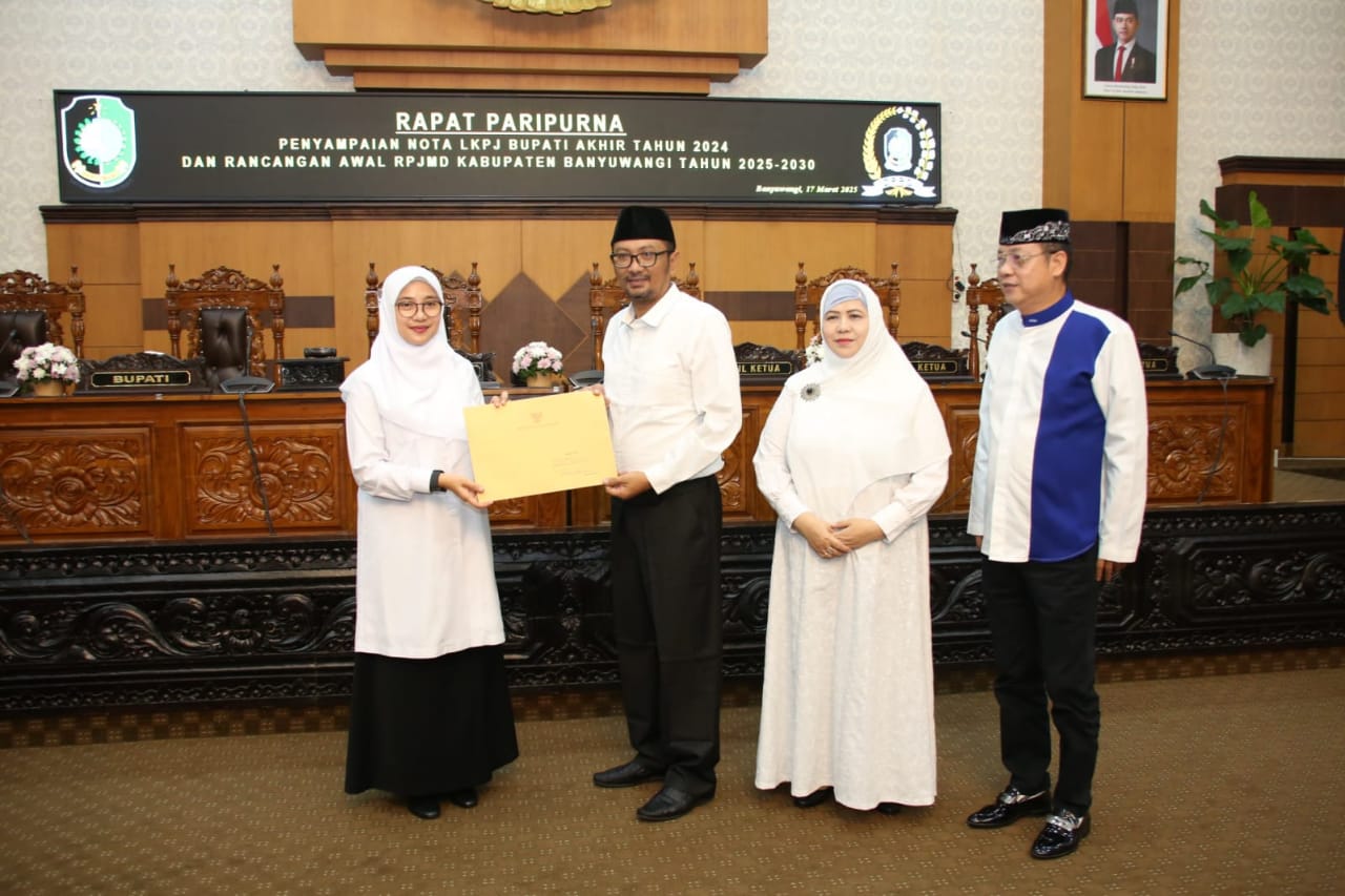SIBER TODAY – Bupati Banyuwangi Ipuk Fiestiandani menyampaikan Nota Pengantar Laporan Keterangan Pertanggungjawaban (LKPJ) 2024 dalam Rapat Paripurna DPRD, Senin (17/3/2025). Berbagai capaian pembangunan dipaparkan, termasuk penurunan kemiskinan, peningkatan Indeks Pembangunan Manusia (IPM), dan pertumbuhan ekonomi.